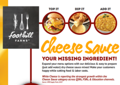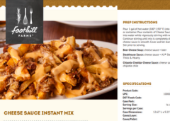 Foothill Farms® Cheese Sauce Instant Mix is a palatable, universally-popular cheese profile that finishes with a pleasing Cheddar note. Preparation is quick and easy.