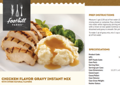 Menu classic comfort foods easily with Foothill Farms® Chicken Flavor Gravy Instant Mix. A blend of lively roast-chicken flavor, onion, mushroom flavoring, herbs and spices that has a hearty rich taste and creamy mouth feel that until now only made-from-scratch possessed.