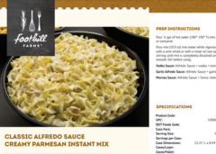 Foothill Farms® Classic Alfredo Sauce Creamy Parmesan Instant Mix is a creamy sauce that will take you to Parma, Italy. This classic blend of Parmesan cheese and butter embodies the richness Alfredo is famous for, without all the fat and calories.